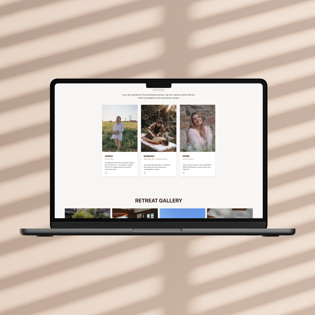 Das Projekt erforderte die Entwicklung einer umfassenden digitalen Lösung für ein Wellness-Unternehmen. Die Herausforderung lag darin, eine beruhigende, vertrauensvolle Markenidentität zu schaffen und gleichzeitig ein funktionales CMS zu entwickeln, das es dem Kunden ermöglicht, Retreats, Events und Medieninhalte selbstständig zu verwalten. Zusätzlich musste eine Mediathek mit Audio-Player integriert werden, um geführte Meditationen und Wellness-Inhalte bereitzustellen.